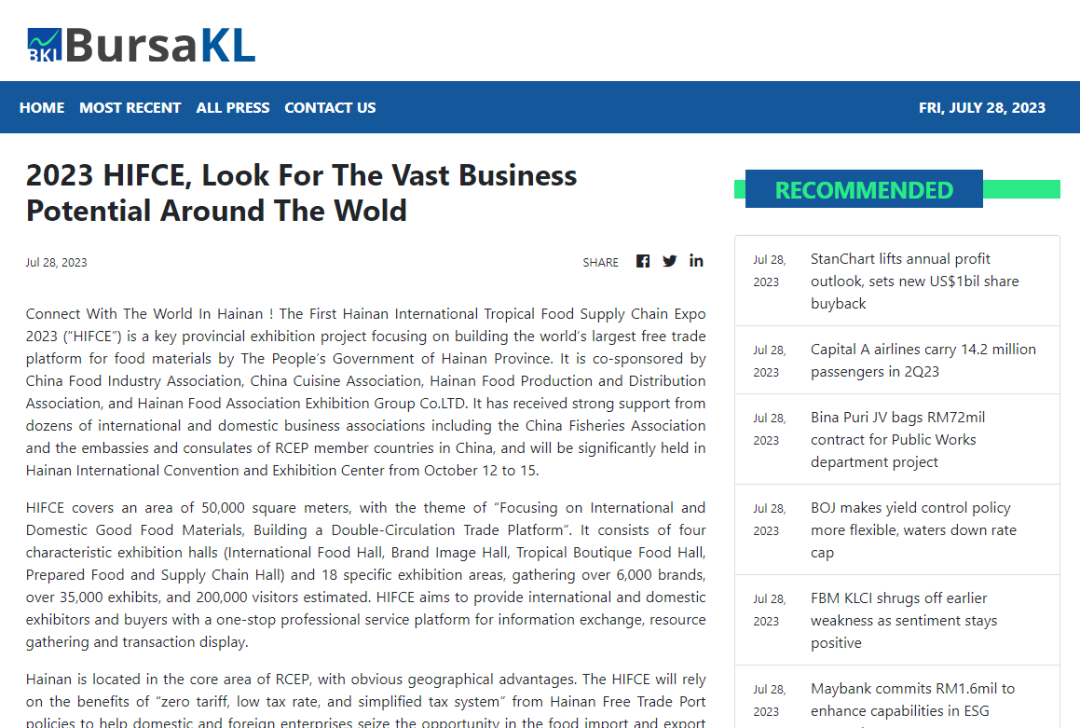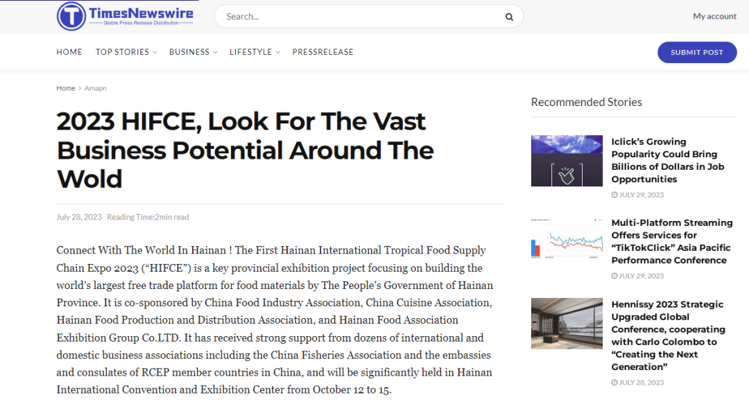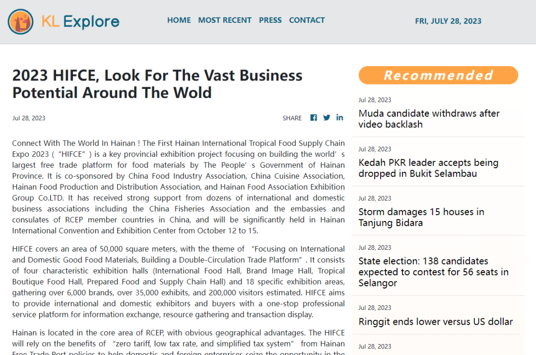 目前各項(xiàng)籌備工作正在有序進(jìn)行當(dāng)中。除了國內(nèi)媒體高度關(guān)注以外,國外多家媒體也頻頻關(guān)注2023海食會的相關(guān)動向,美國《Times Newswire》、《World Development Press》《Update News》,法國《European Union leaders》,在東南亞地區(qū)較為流行的《亞洲日志》、《吉隆坡之聲》(曾獲馬來西亞全面資訊最佳媒體)等綜合媒體。新加坡的《東盟報(bào)道》、東南亞綜合新聞網(wǎng)站《早間新聞特派》,國際新聞資訊媒體《國際在線》,《每日報(bào)紙精選》,新加坡和馬來西亞的熱點(diǎn)資訊新聞媒體《亞洲熱點(diǎn)》。馬來西亞各新聞網(wǎng)絡(luò)媒體《大馬之聲》、《馬來西亞之心》,連同國際商業(yè)金融新聞資訊媒體《BursaKL》、服務(wù)于泛東南亞地區(qū)時(shí)政新聞網(wǎng)站《亞洲震撼》、《東盟獨(dú)家在線》等204家國際知名媒體廣泛報(bào)道。